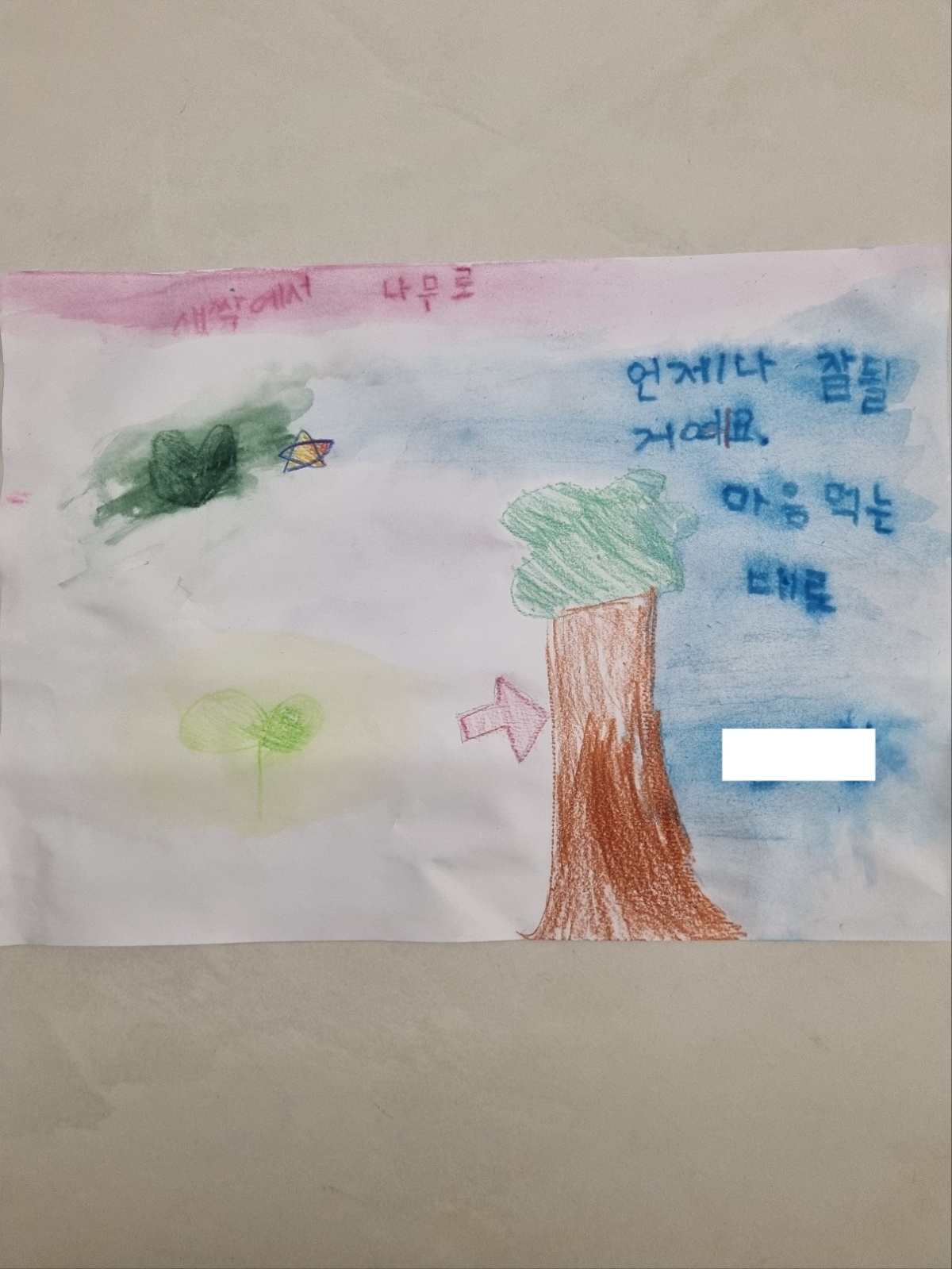 유치원생 딸이 엄마의 시작을 응원해 주면 그려준 그림.. 다시 무엇인가를 시작한다는 그 때의 설레임...