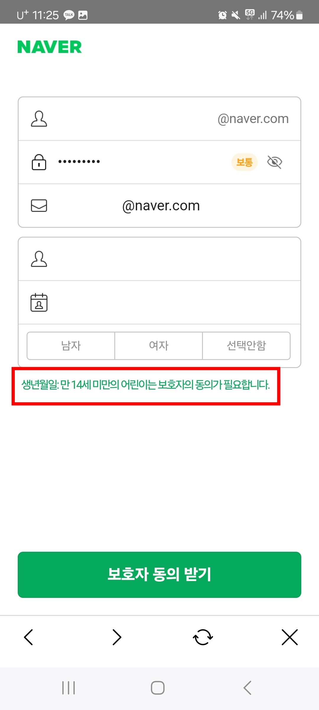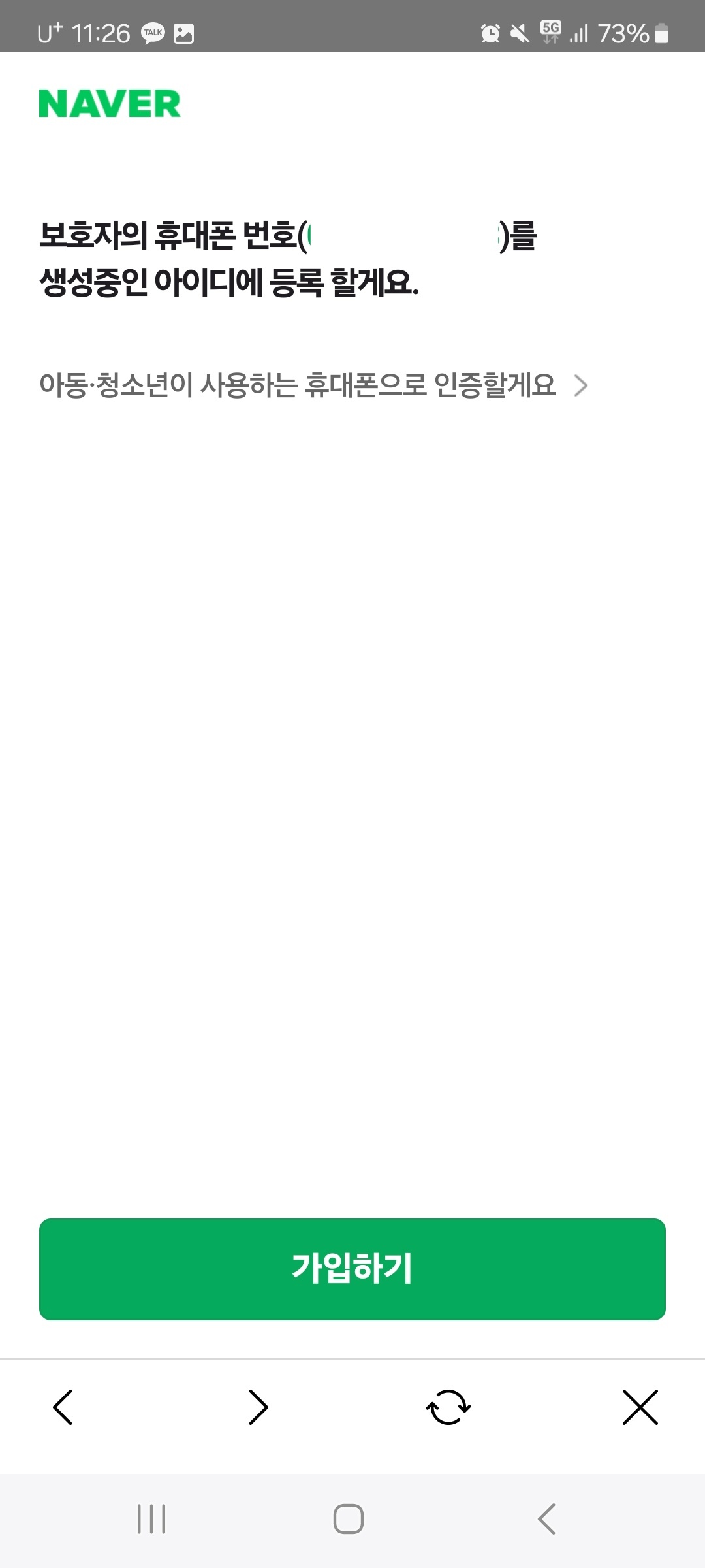 이용약관 동의는 필수만 진행하셔도 됩니다. 저희 아이가 쓸 아이디, 비밀번호, 메일 주소, 이름, 생년월일을 적으면, "만 14세 미만의 어린이는 보호자의 동의가 필요합니다" 라는 문구가 나옵니다. 저희 아이는 아직 휴대폰이 없기 때문에 보호자 휴대폰 인증 절차를 진행하였습니다. 마지막으로 가입하기 클릭하면 네이버에 회원가입 완료입니다^^ 네이버 회원가입과 동시에 블로그가 만들어 집니다.
