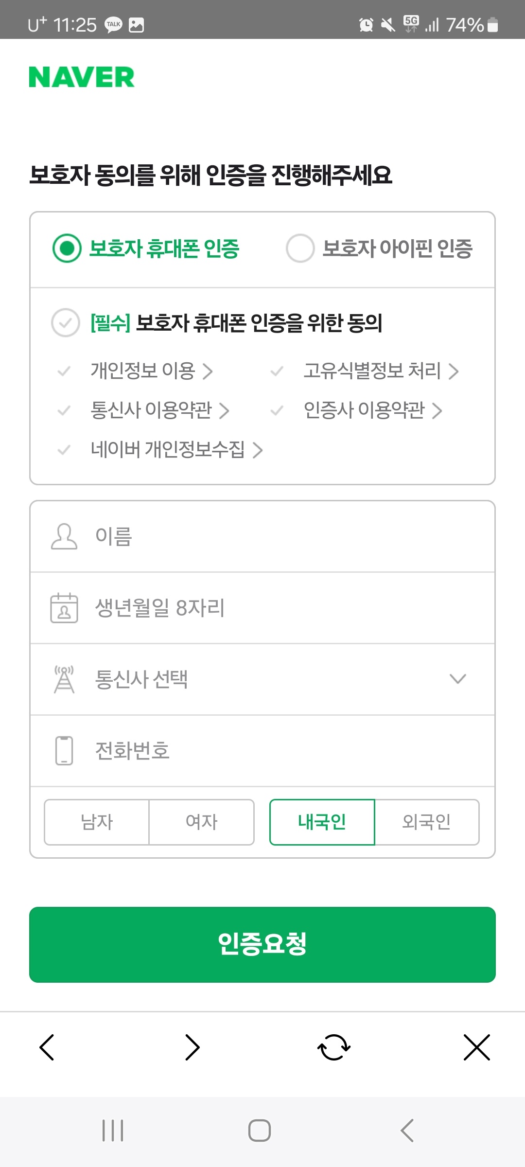 - 만 14세미만의 미성년자는 보호자의 동의가 필요하면, 실명인증 휴대전화 번호는 미성년자 본인 번호 또는 보호자 번호 모두 가능합니다.