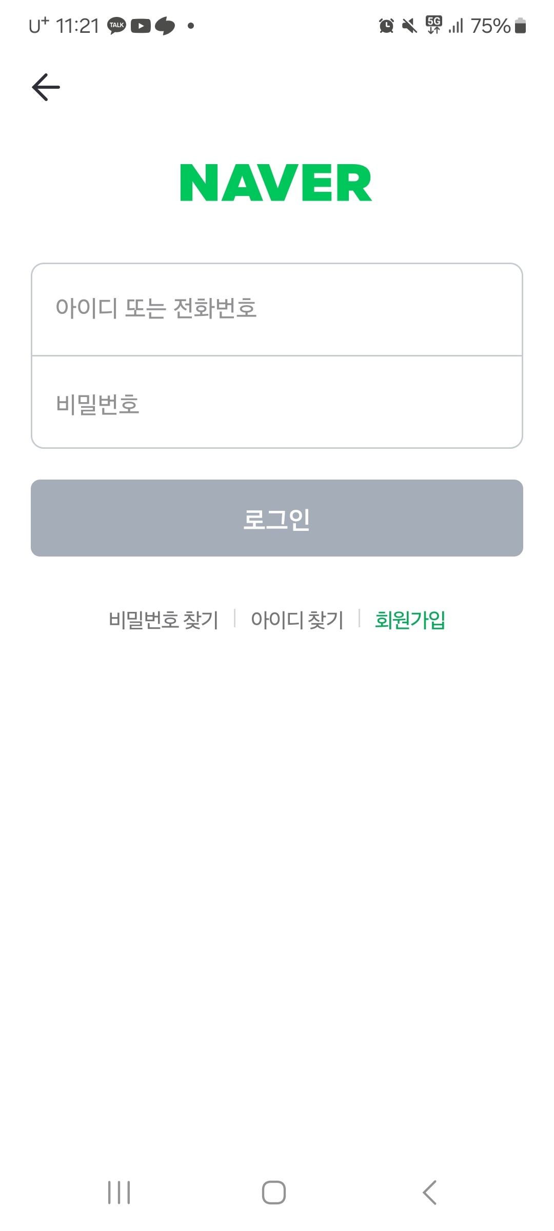 네이버 앱 없으신 분들을 없을 건데요, 이미 본인의 이름으로 로그인이 되어 있는 분들이 많을 겁니다. 그래서, 네이버 앱 첫 화면 상단 왼쪽의 가로선 3개를 클릭하고 화면의 맨 밑으로 내려오면 로그아웃 버튼을 클릭해 줍니다. 그리고 다시 네이버 앱에 들어가면 회원가입 화면이 나옵니다. 회원가입 클릭 해 주세요~